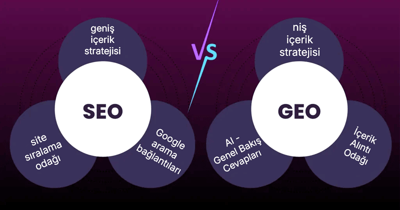 GEO, SEO’nun yerine geçen bir disiplin değil; aramanın yeni davranışlarına uyarlanmış bir uzantısıdır. SEO görünürlük için güçlü bir temel sağlar; ancak yapay zekâ yanıtlarında yer almak için içeriklerin daha net, daha yapılandırılmış ve varlık odaklı olması gerekir.